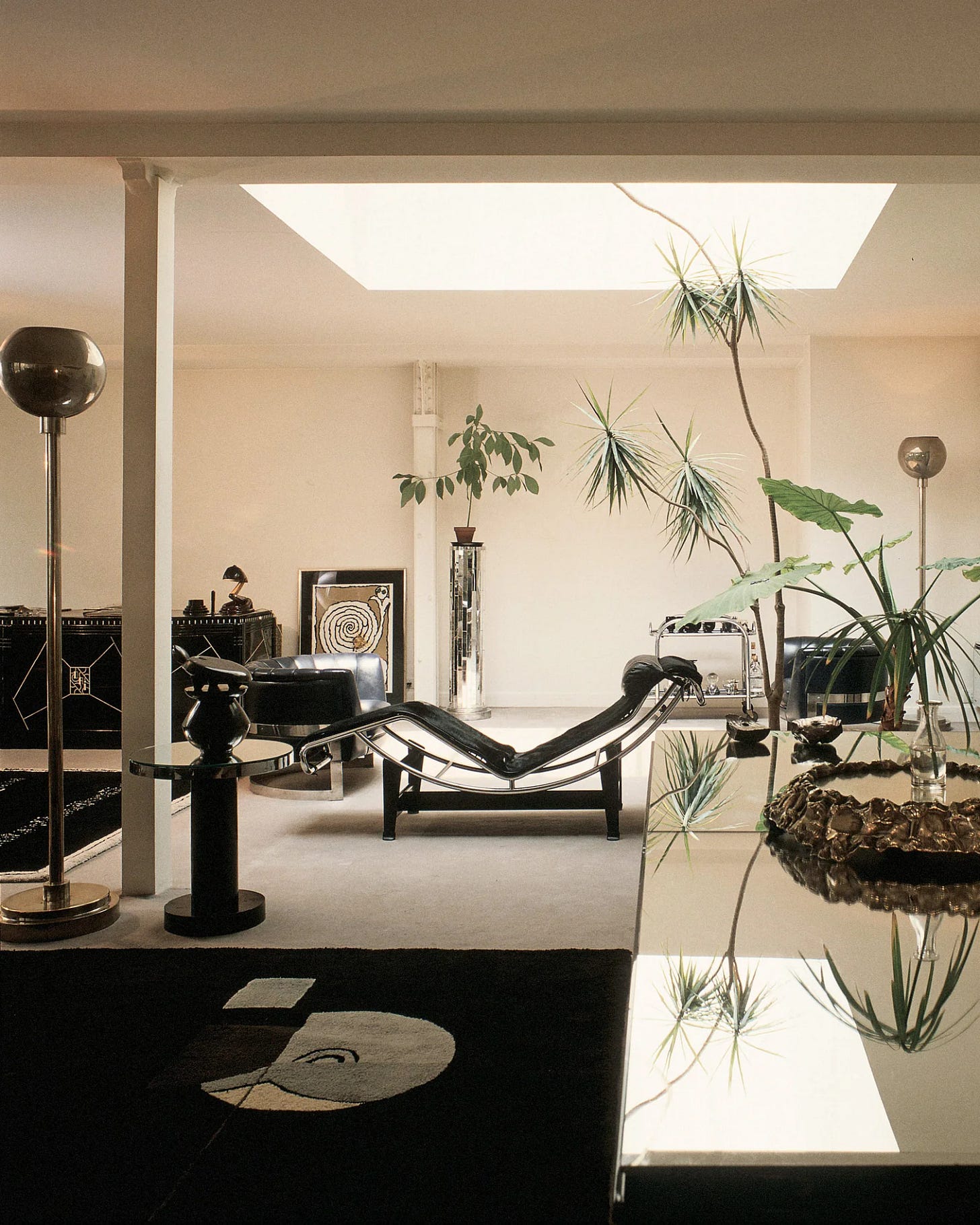 Her apartment was, unsurprisingly, filled with iconic pieces, including a black leather Le Corbusier LC4 lounge chair, Thonet Model 209 bentwood armchairs, and a variety of Eileen Gray rugs.