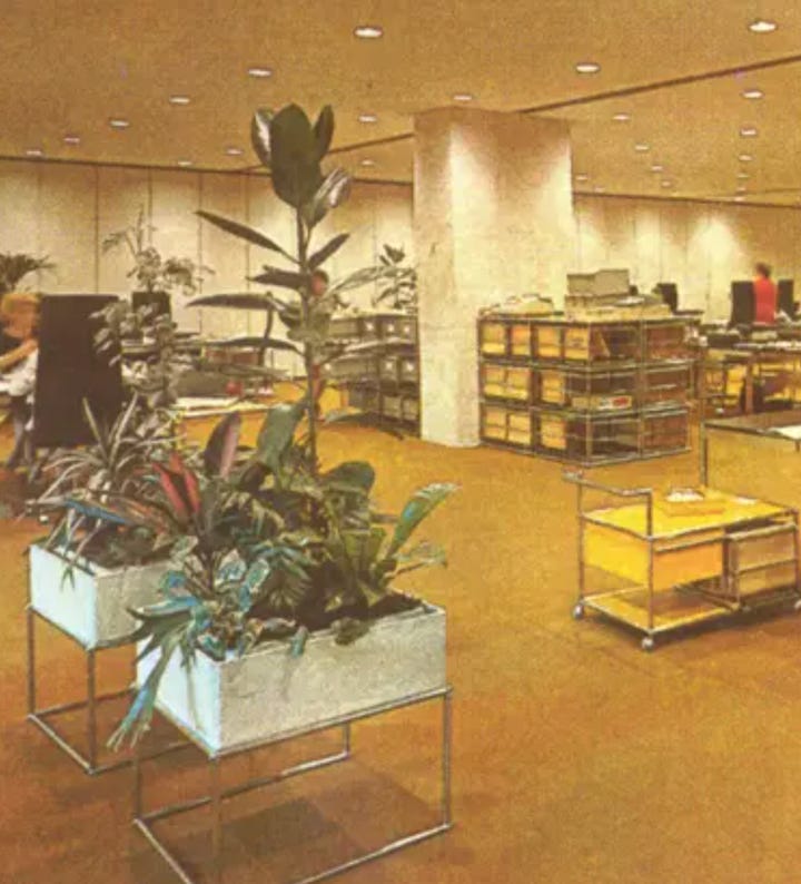 “Teamland” Open plan office concept, Zurich 1973.